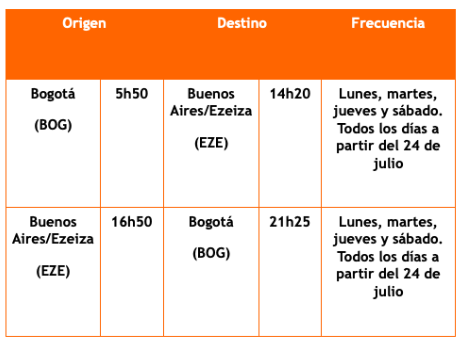 BOGOTÁ – EZEIZA: a partir del 1° de abril de 2024
